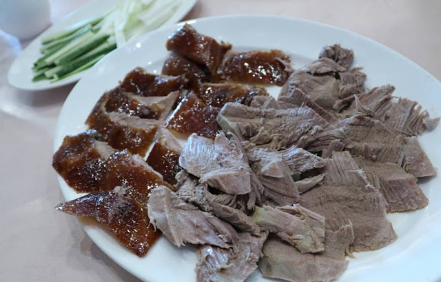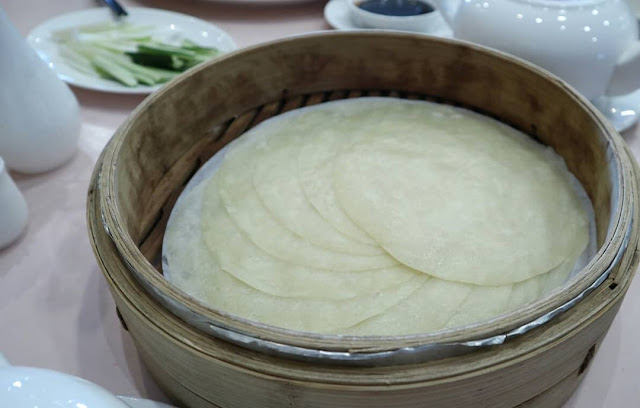 🔺金龍片皮鴨 $1960,鴨肉很好咬不乾柴,鴨皮烤的酥脆油亮,特別的是搭配的餅皮跟一般的潤餅皮不一樣,是有厚度的。另外又加了600元做第二吃鴨粥跟第三吃清炒鴨肉,現場還有片鴨秀,整隻鴨就看著餐廳師傅俐落的片著,就成為桌上的佳餚了。