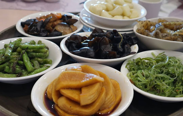 🔺小菜六碟 $600,一入座服務員會端來一大盤小菜讓我們挑選,當然不是招待是要收費的,原本想說算了,但看有幾樣還不錯吃的感覺,大夥決定點來吃看看,我最愛梅漬番茄跟黃金泡菜,但這兩樣我沒拍到照片😢,四季豆也很不錯。