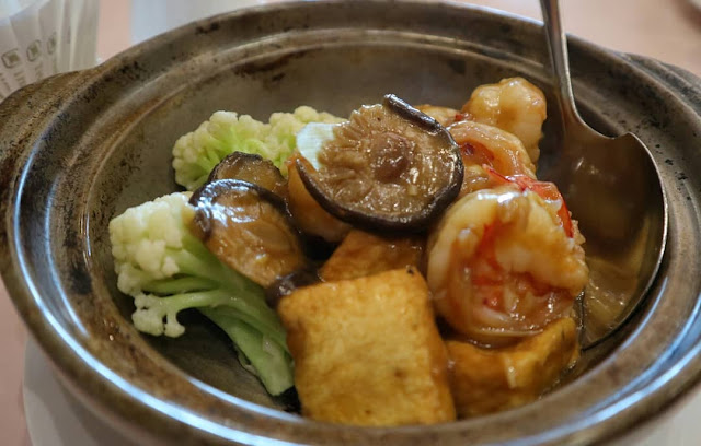 🔺蝦球豆腐煲 $720,大約三到四人份一人一隻蝦一塊豆腐一片香菇就分完了,好吃但也好貴。