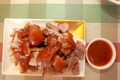 蜜汁雞份量很多表面焦黃色,直接把檸檬擠壓滴下檸檬汁提味。