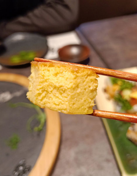 邊邊的方塊分別是毛豆蛋糕與玉米蛋糕~讓我意想不到的是原來玉米做成蛋糕是如此有趣~濕潤的糕體下有著玉米甜甜的氣味~很有意思