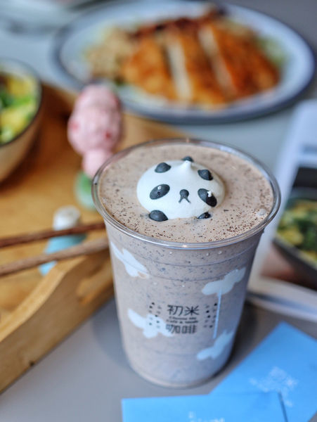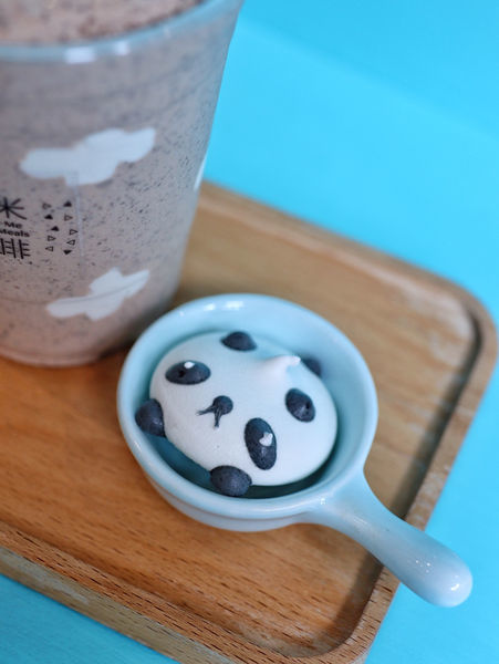 ▫️杯壁上的雲朵造型跟熊貓造型馬林糖再度意圖萌翻你的心,簡直捨不得喝了。使用OREO打出的冰沙黑白相間,呼應熊貓的黑白配色,入口能咬到OREO餅乾碎塊,有點驚喜感,意外的是甜度大約只有半糖,整杯喝完也不感覺膩。