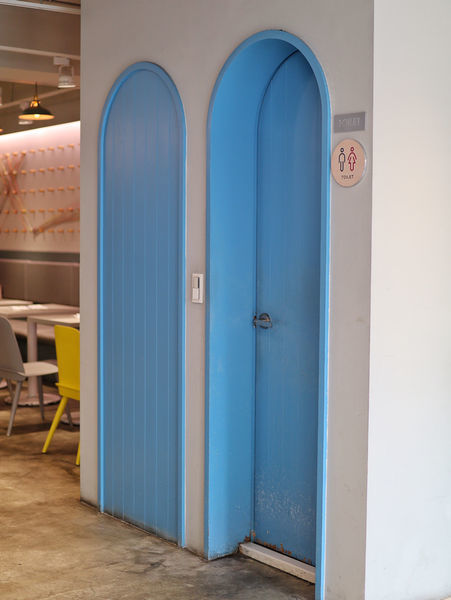 洗手間的希臘感拱形門。