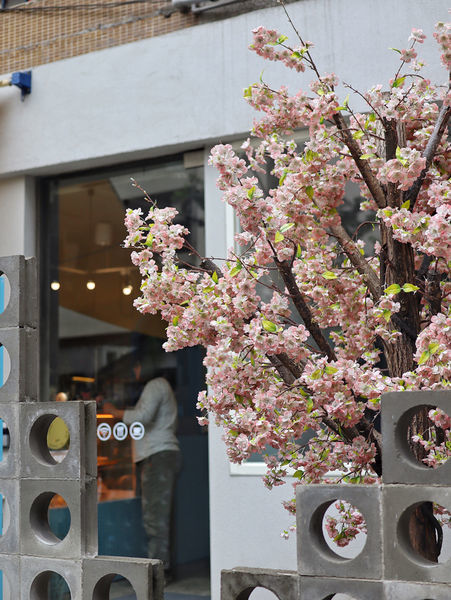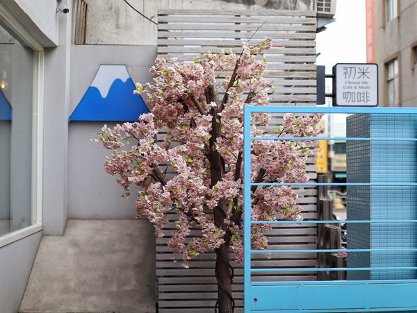 水藍色的大門清新感十足,庭院右手邊是粉色的櫻花樹與富士山造景,左手邊則是霓虹燈管排成的你不是網美網美牆,兩邊都是很有人氣的拍照景點哦。