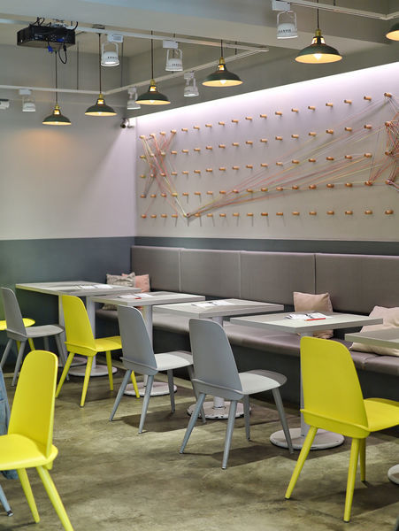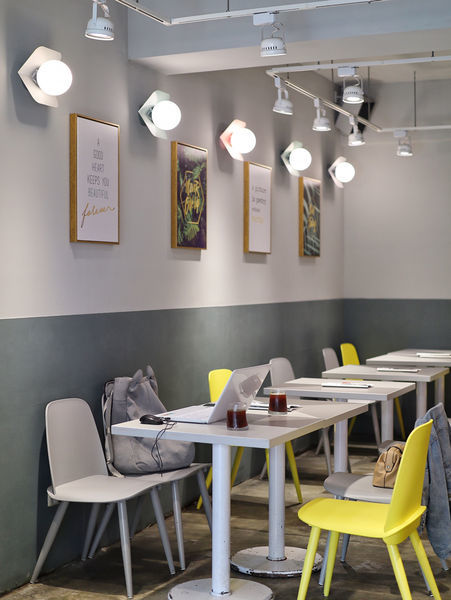 後頭則是灰與黃的配色,清一色乾淨素雅的桌面,擺上餐點特別適合拍照
