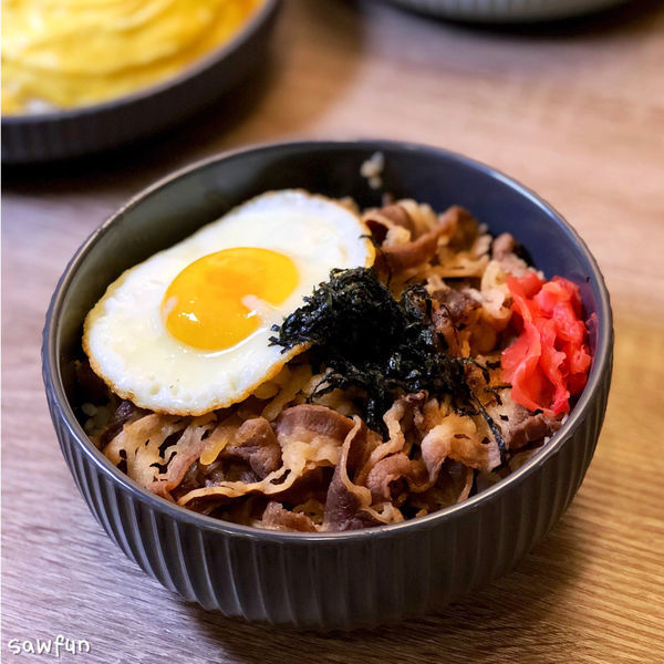 牛丼飯粒吸收醬汁和蛋液更加濕潤