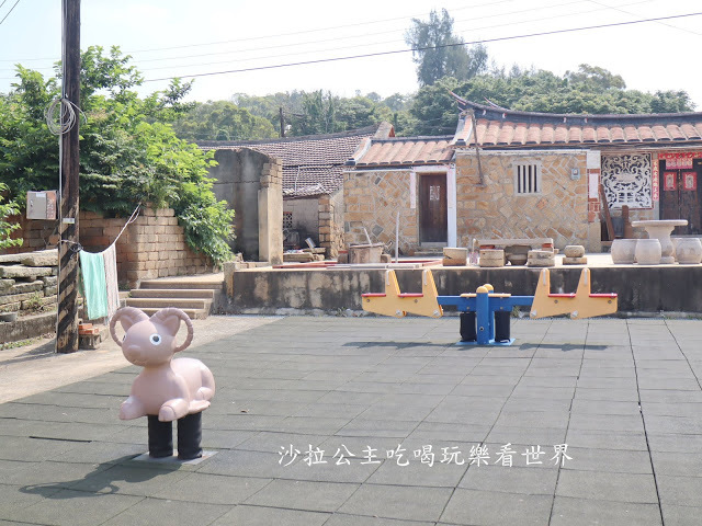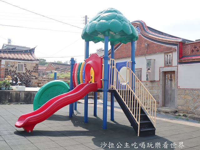 沙拉房間有一個門打開就通到這裡,有溜滑梯、翹翹板,也很適合親子住宿,小朋友也有地方可以跑跳