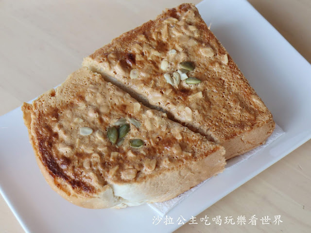 花生厚片超有誠意,上面還有南瓜子、堅果,吐司也超厚