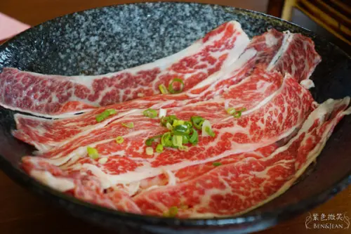 除了牛肉以外不得不稱讚一下它們厲害的梅花豬阿!厲害絕對是有原因的,我在吃肉的時後通常都是避著眼睛有東西放到嘴巴裡面就好了,但我吃著吃著突然發現,哇靠!這肉的口感也太好了,咬下去的時候會有彈牙的感覺,說彈牙好像也有點誇張,但就是那種咬下去的瞬間會有脆脆些為反彈的那種勁,總而言之難以形容要自己去體驗,為此我還特別叫服務生過來問他說這到底是甚麼肉呢~