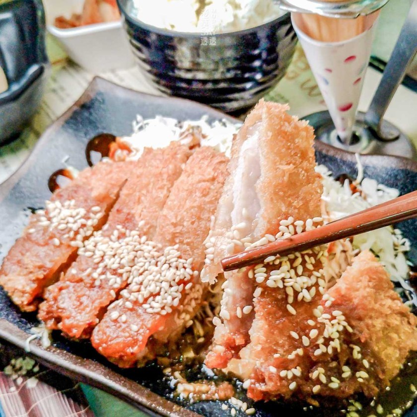 ↳炸豬排下是高麗菜絲解膩,附有沙拉、飯以及霜淇淋杯,飯後可至櫃檯裝霜淇淋。