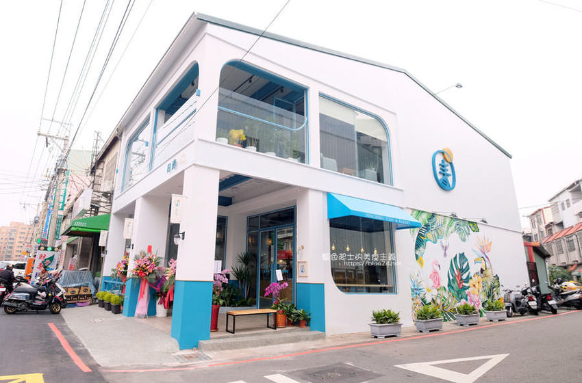台中豐原│日青咖啡-網美咖啡館,藍白色系外觀,鮮豔加分IG拍照打卡彩繪牆