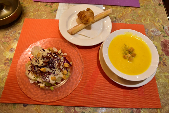 還有凱薩沙拉、香濃濃湯、牛角可頌、義大利麵包棒、醇香奶酪、喝到飽的咖啡飲料