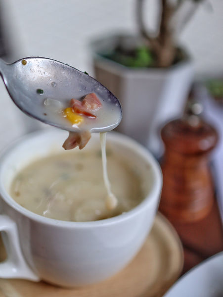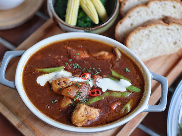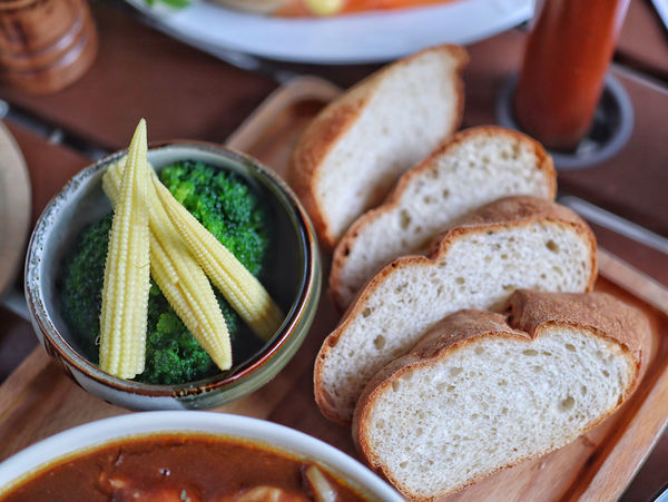 ▫️自從拆了牙套之後,看見任何咖哩都覺得久別相逢。上桌時咖哩香氣四溢,醬汁濃稠帶有香料氣息,舀起滿滿的帶骨雞肉塊跟燉煮蔬菜,清燙的花椰菜跟玉米筍貼心的另外放置,避免因為浸泡醬汁中而導致脆口度下降。預設是搭配花蓮黑米,但我個人推薦更換成麵包蘸著吃,更能吸附醬汁中的精華!