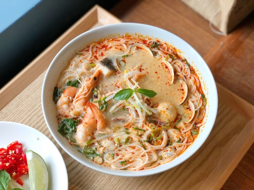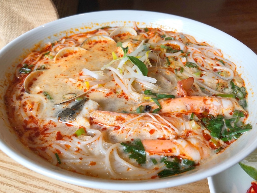 由多種海鮮與香料熬製的湯頭喝得到濃濃的鮮味,米線和配料吸附了滿滿湯汁,辣中帶酸的後勁相當清爽開胃,大鳥胃Eat璇本人喝到連湯都不剩,一整個大愛心!