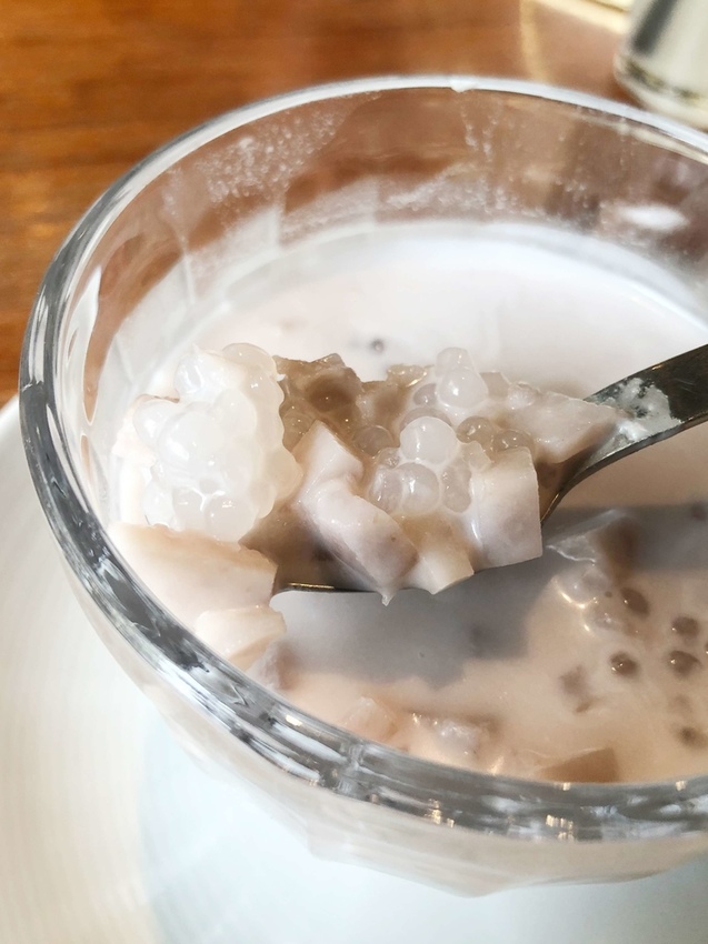 金福越式河粉的芋頭西米露一整碗滿滿都是配料,芋頭口感較為紮實,口中不斷散發著濃濃的芋香和奶香,是道會讓人齒頰留香的甜點❤