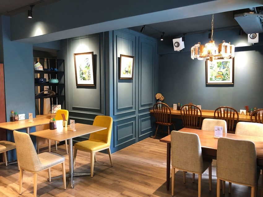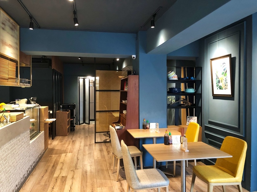 因越南過去曾受到法國殖民影響,所以店內採用高貴典雅的法式藍作為空間營造重點,並巧妙地以屏風和層架裝飾區隔出空間,有雙人座、四人座也有適合多人聚餐的大桌。