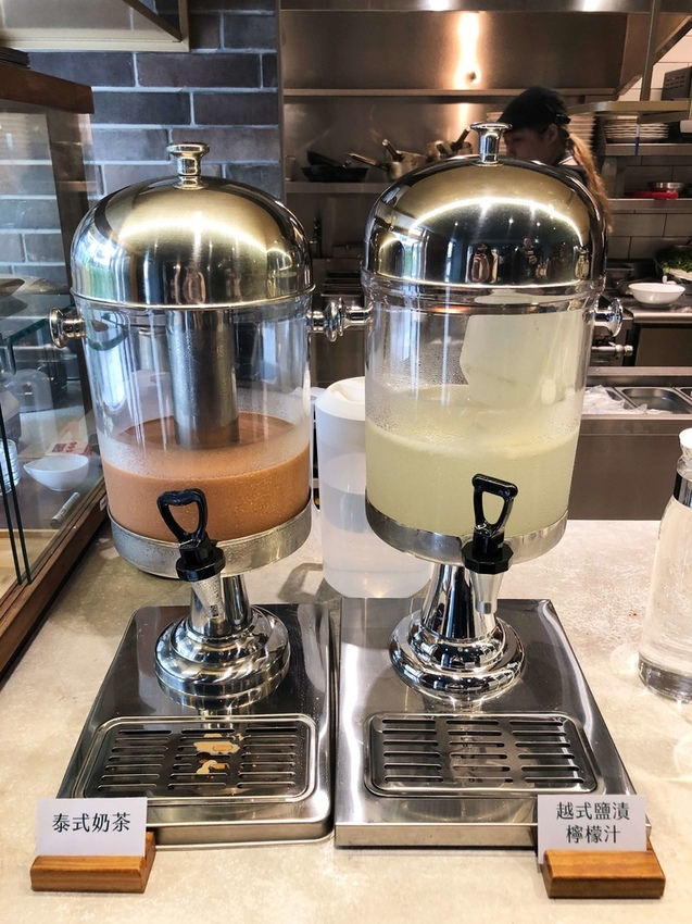 櫃台旁有提供泰式奶茶和越式鹽漬檸檬汁可以免費暢飲,真的超佛心!