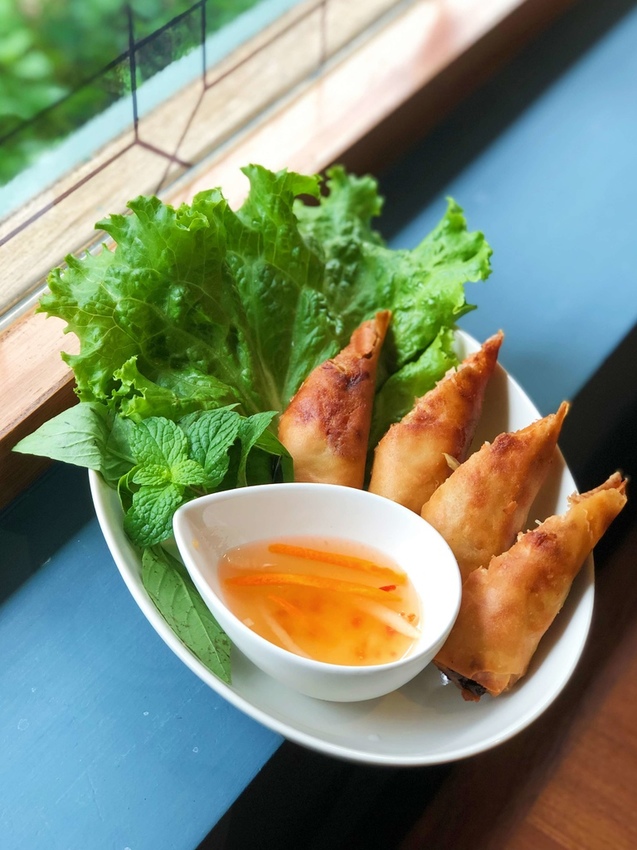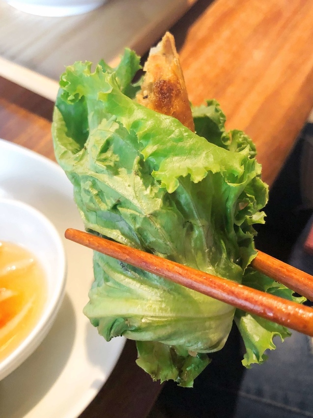 手工製作的炸春捲外皮金黃微焦,除了可以直接食用也可以沾醬或包菜吃,脆脆的口感搭配飽滿的餡料不開玩笑的好吃!