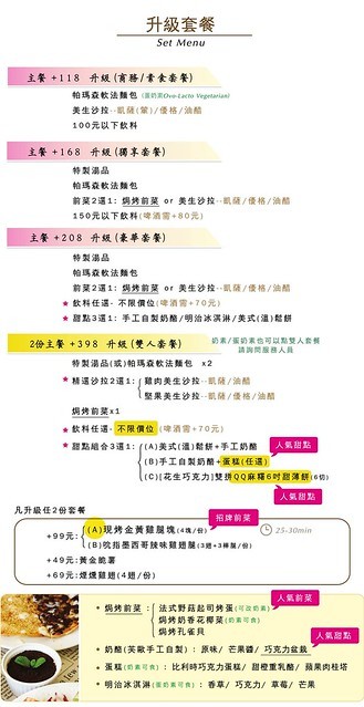 我們選擇了雙人套餐,只要加價398就可以有濃湯、麵包、沙拉、飲品任選、甜點