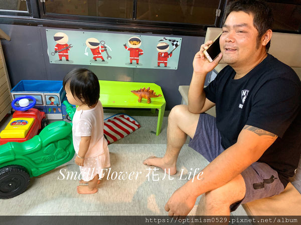 手忙腳亂的花爸,要顧小花還要搞鐵板燒(哈)