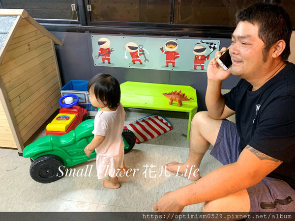 小孩吃完就坐不住啦!!有場地能遊玩真好。