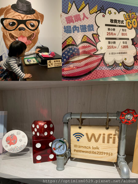小花像在逛大街一樣,參觀嘴嘴桌遊館裡的各個佈置