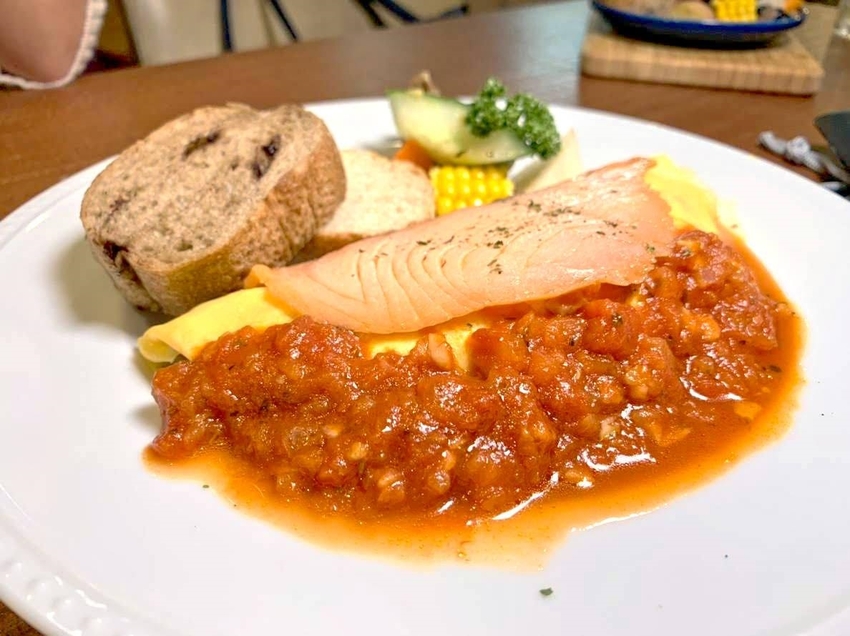 第二口搭配焗烤起司在加上店家自製的番茄泥
