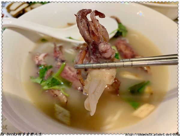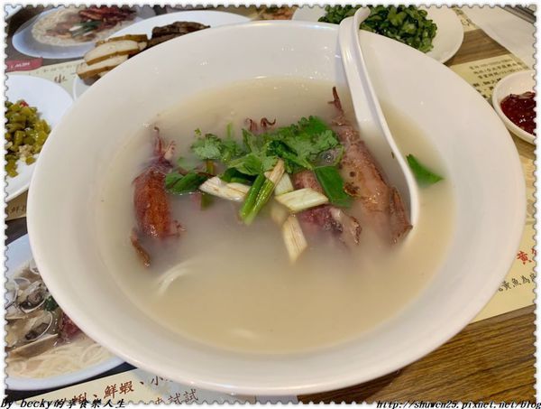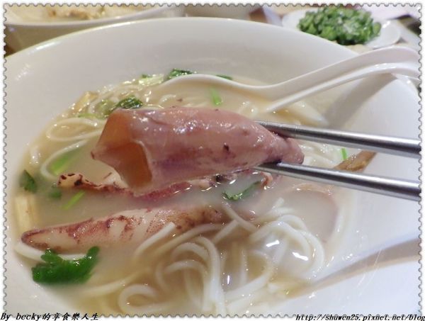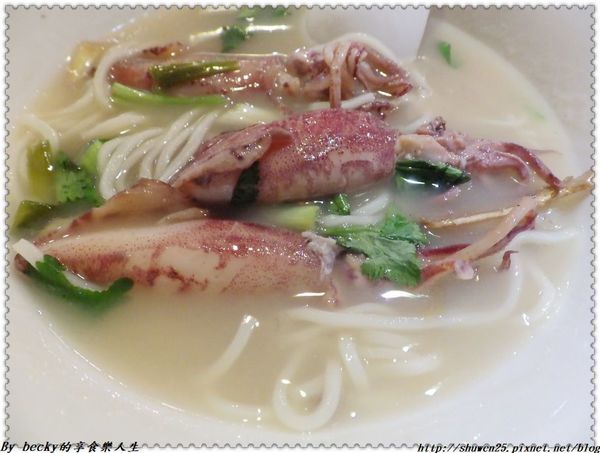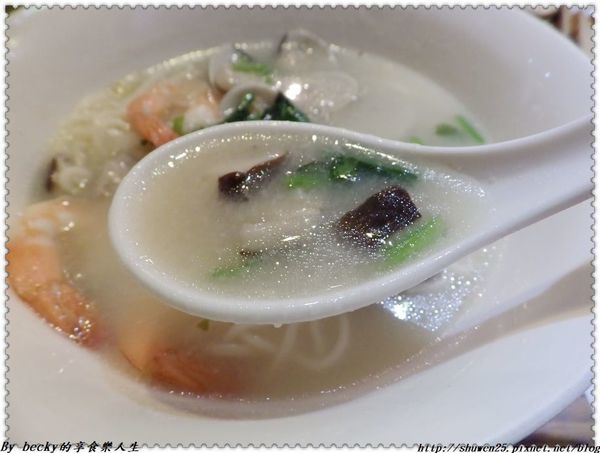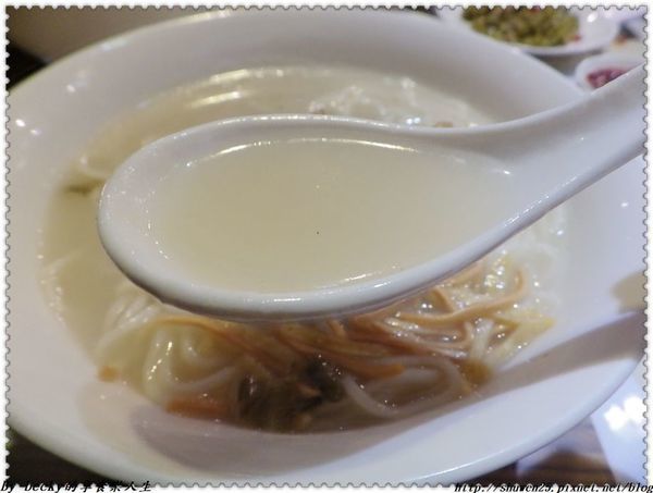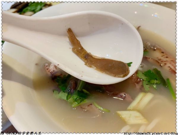 喝一口湯頭,裡頭有煸香過的薑味及小卷的鮮甜味,還有蔥及香菜添加香氣。