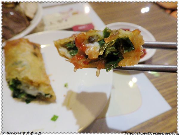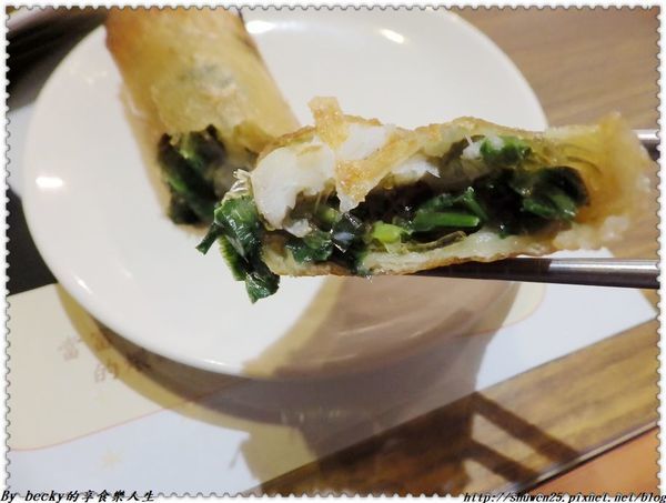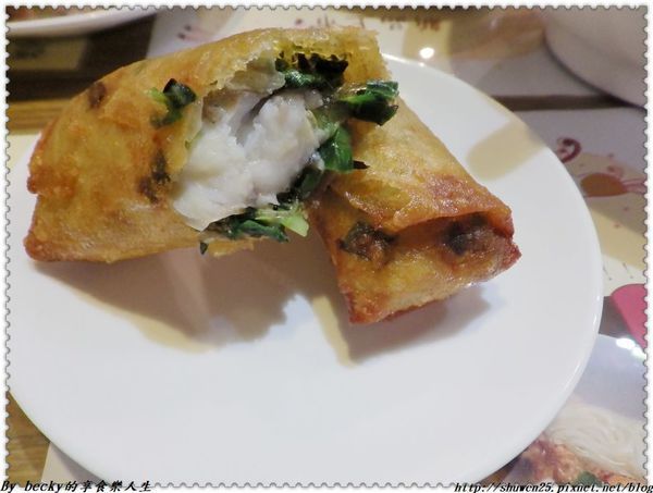 這個黃魚春捲是店家超推薦及人氣小菜之一,是手工一捲捲包的,裡頭有黃魚(米酒醃過)、韭菜、冬粉再加入洋蔥丁提味,這個道是現點現炸的,沒有過多的調味,強調食材新鮮的味道,春捲皮炸得酥脆且不油膩,黃魚肉鮮嫩的在口中化開,有著韭菜香氣,份量剛好,熱騰騰入口超棒!個人很推喔!