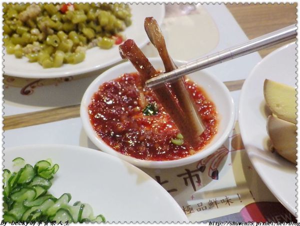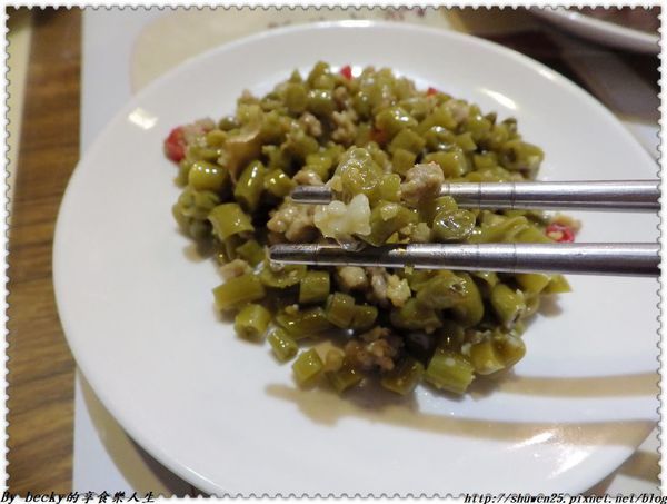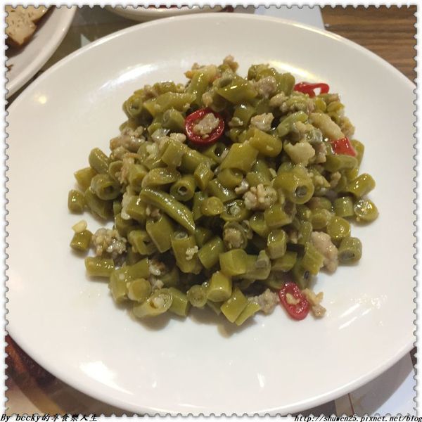 這個酸江豆炒肉末~其實在becky的飲食字典中出現的次數用手指都算的出來,這個酸江豆炒肉末是老闆介紹的,入口咀嚼酸味程度大過於辣味,越吃這個酸度還挺開胃的,有點欲罷不能。