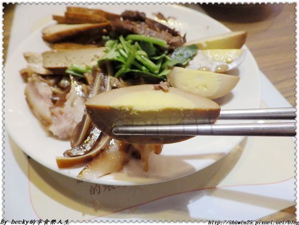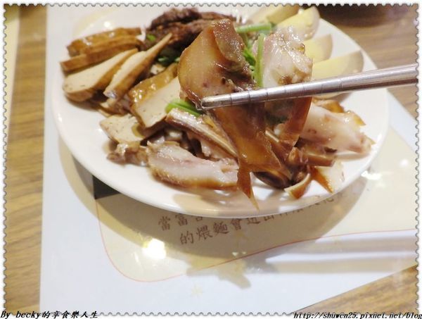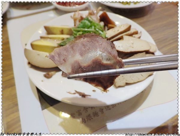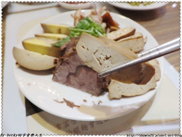 牛腱選用牛腱心,中間帶有膠質筋,筋軟嫩帶點嚼勁,牛腱肉滷得入味,口感不柴柴的,入口咀嚼很不錯。