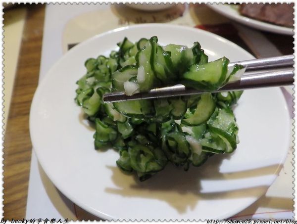 這道小菜是吃刀工的,可以看到小黃瓜切的薄,且厚度均勻,入口咀嚼蒜味濃厚且清脆可口,還有些許蒜頭的微辣,用來配飯配麵再合適不過了!