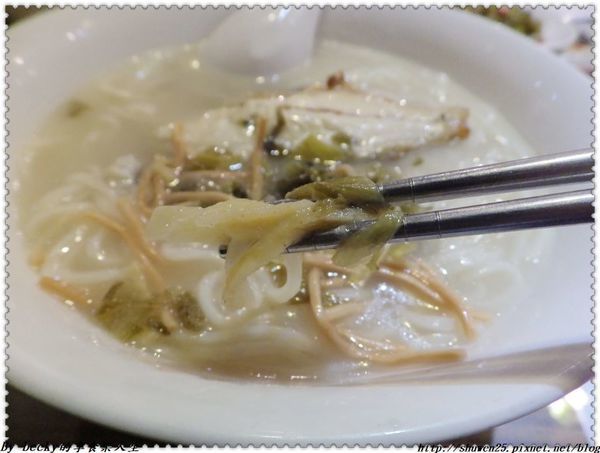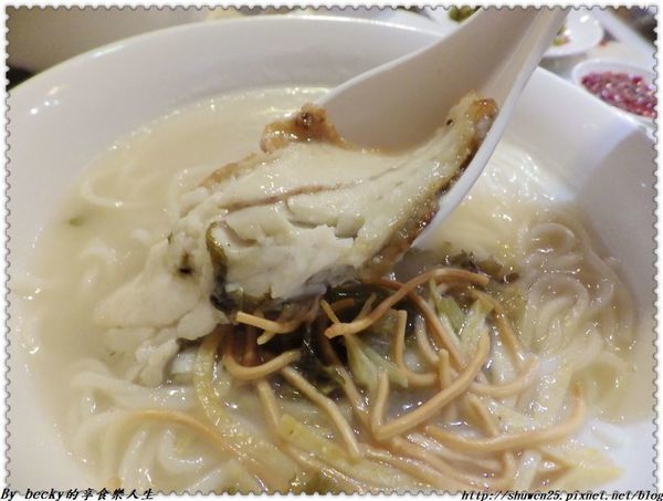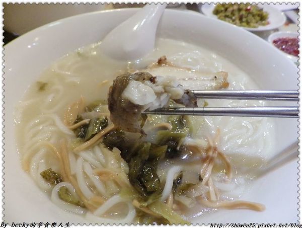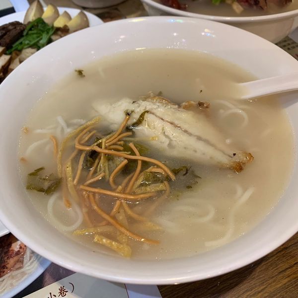 湯頭有海鮮的鮮加上酸菜的酸提味,上頭少許的炸麵條吃起脆香,黃魚魚皮有略炸過,而魚肉吸飽了湯汁,吃起來細緻且無腥味,層次感豐富,麵條也吸收湯汁,帶著咕溜咕溜口感,很順口,果然是鎮店招牌。