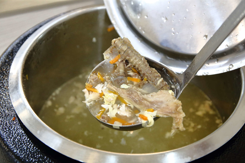一般便當店大概就是一大鍋的海帶湯,這兒提供的湯都是花上大把時間以雞骨熬成,看來清透,卻是鮮甜無比