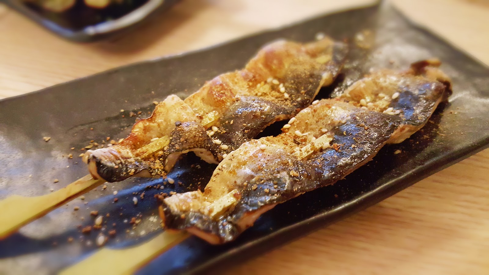 這是第一道上桌的串燒,師傅精準掌握火侯和燒烤時間,雞翅連骨頭一起烤,熟度剛好,肉質鮮嫩,烤好撒點鹽和胡椒香氣十足。