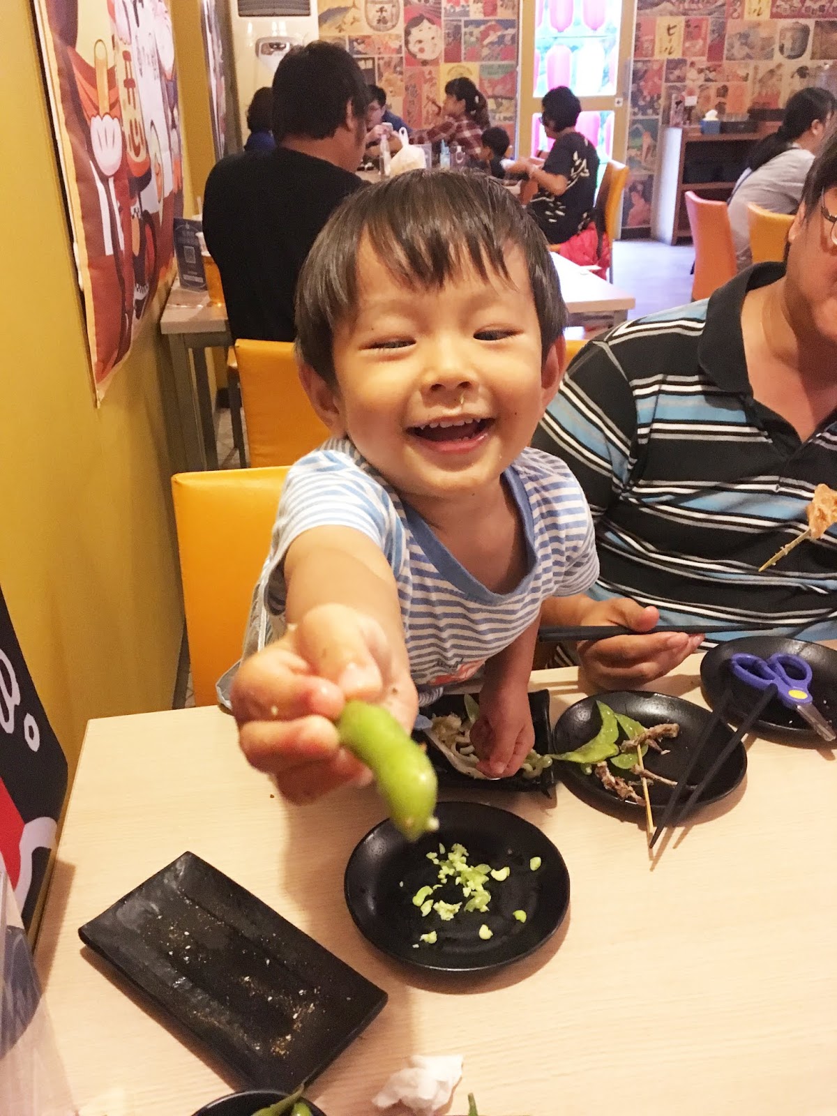 小福寶第一次和爸媽來居酒屋,對於店家繽紛的日式裝飾很感興趣,一直四處探索,串燒和烤物不但我們喜歡吃,挑嘴的小福寶也搶著吃。親子能一起共享美味的餐點和放鬆的氣氛,真的是很美好的回憶。