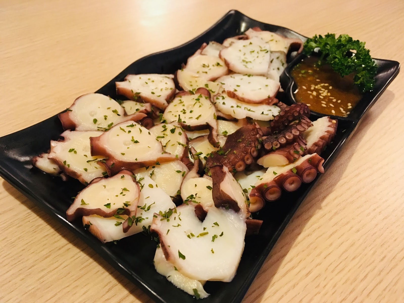 「琉球Tako」是小琉球漁民新鮮捕撈的限量餐點,章魚切片經過汆燙、冰鎮後脆口彈牙,Q彈鮮美的肉質很適合作為下酒菜,不沾醬單吃就很美味了。