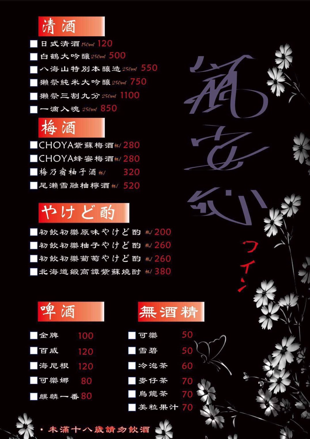 | 酒單 |