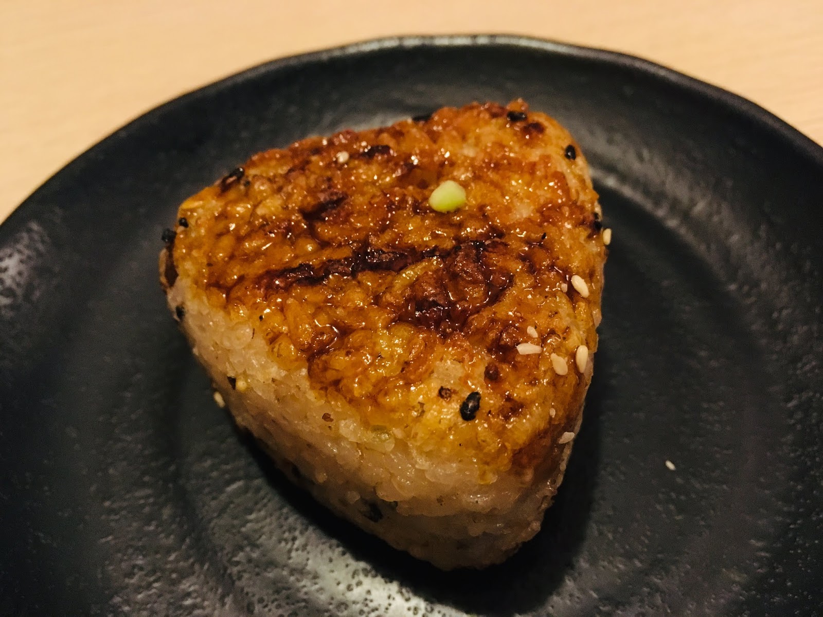 「鬼頭刀烤飯糰」使用小琉球特產鬼頭刀,拌入炙烤過的日式飯糰,散發恰到好處的鑊氣,每一口都可以吃到扎實的米飯和鬼頭刀魚干,搭配外部包裹著的海苔,是很別出心裁的焦香海味。
