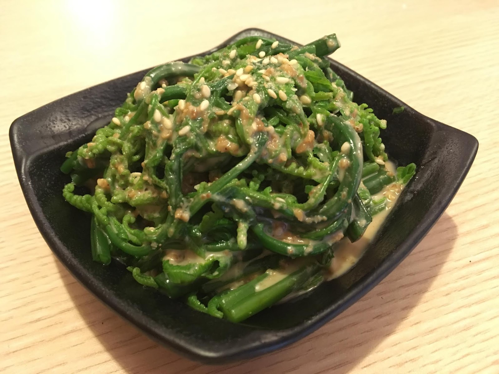 再來的「胡麻過貓」深得我心,軟嫩的過貓帶點蕨類黏滑口感,伴著清爽香醇的胡麻醬,滿口濃郁香氣,非常開胃!要不是父子倆也愛吃,我真想一個人吃光光。