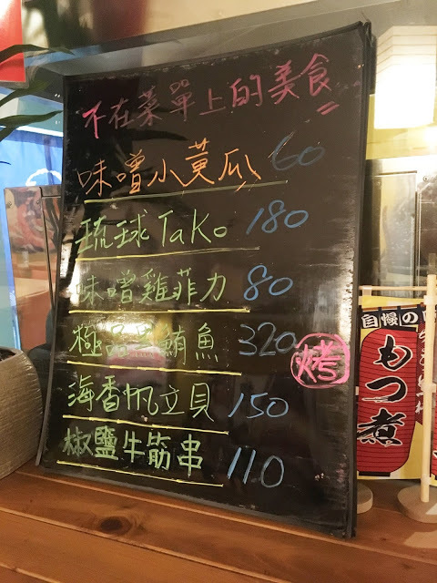 依約走進店內,櫃檯服務人員親切地招呼我們,說明他們的串燒都是純手工製作,使用新鮮天然食材,海鮮為求鮮美都是小琉球漁民當天現捕,限量,早點來吃才吃得到喔!