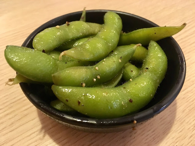 第一道菜以店家招待的「毛豆」做開場,涼拌黑胡椒的做法,凸顯了毛豆的鮮甜Q彈,讓我們一口接一口,小福寶特別愛吃。