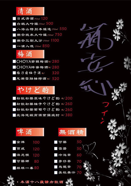 很多媽媽懷孕、哺乳時都不敢喝酒,現在孩子離乳終於可以解放了!酒單上有清酒、梅酒、燒酌、啤酒,也有無酒精的汽水、茶類和果汁。