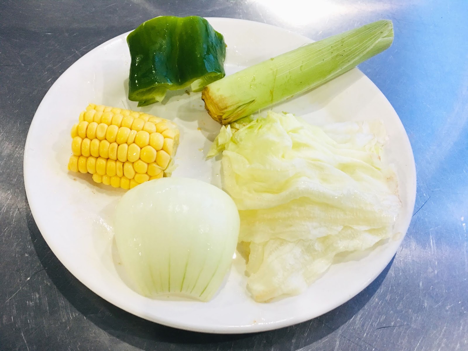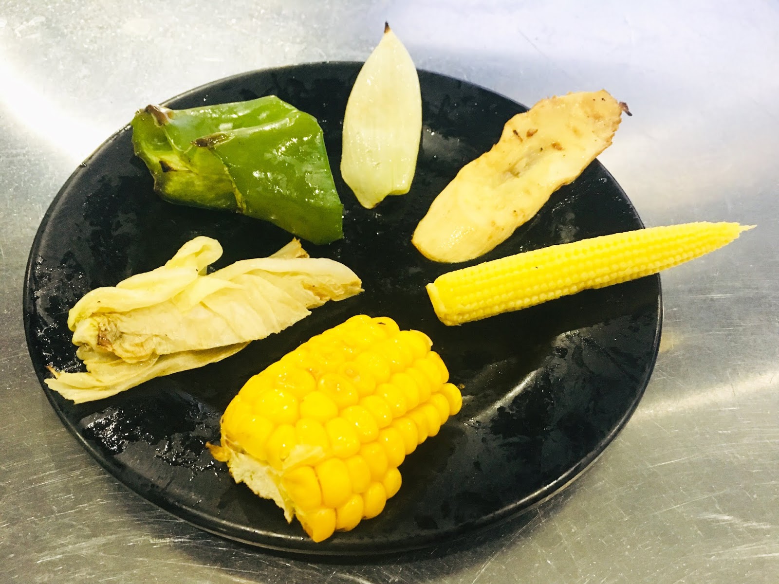 | 青椒、洋蔥、杏鮑菇、美生菜、玉米筍、玉米 |