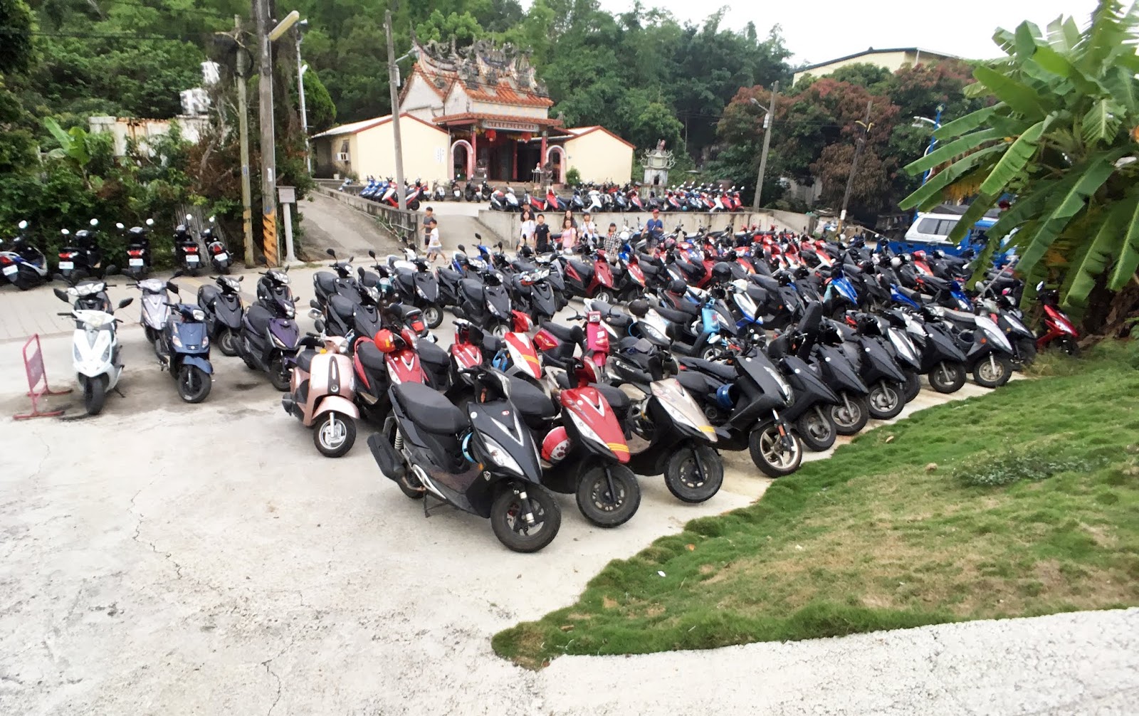 我們在預定時間騎車來到民權路上、三仙宮對面的「筑安心燒物吃到飽」,店前有好幾排機車停放,全部都是客人的機車,數量也太驚人了!讓我好奇到底是有多好吃?真的很慶幸我們有先訂位。