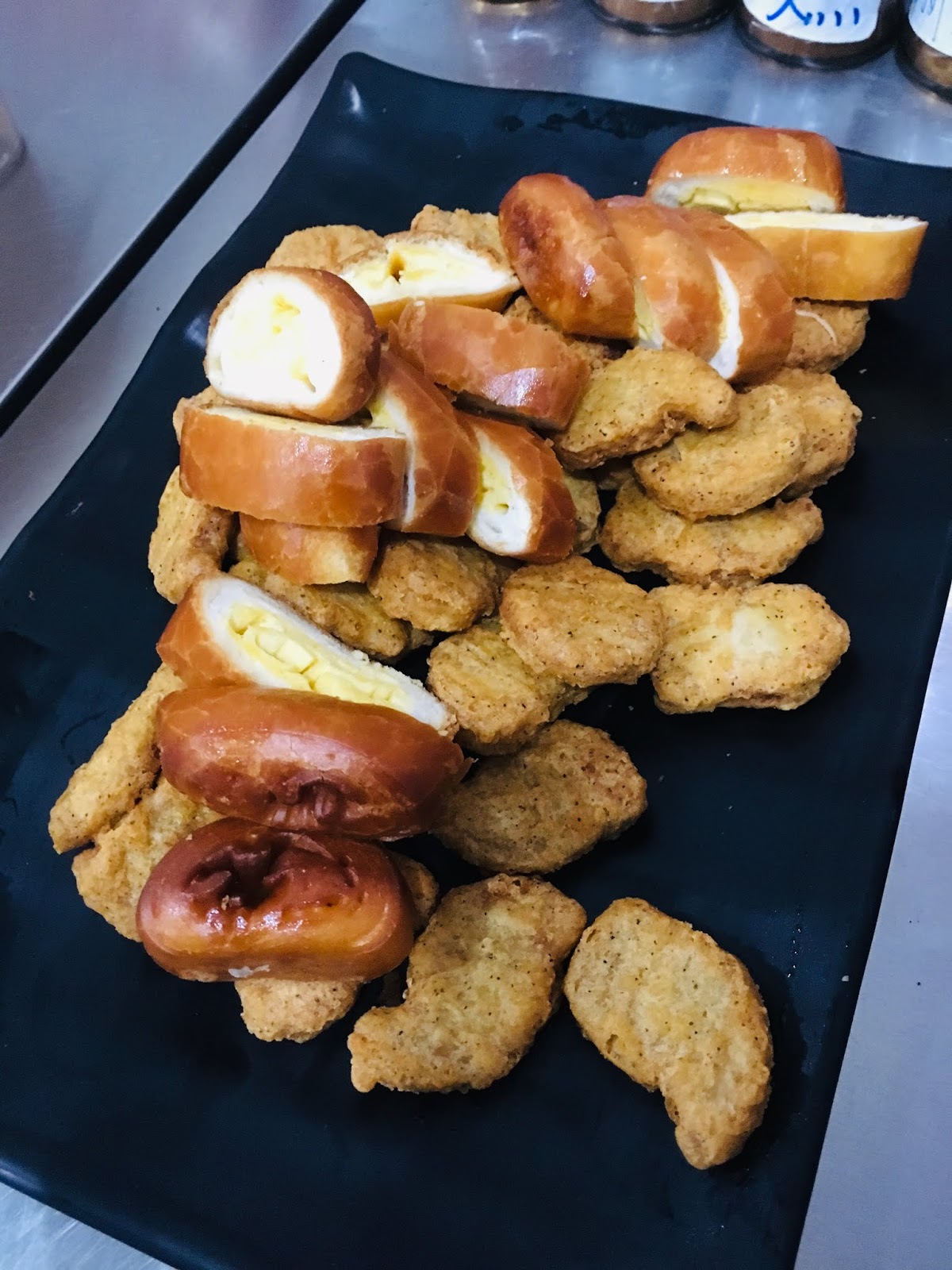 | 銀絲卷、雞塊、炒麵、調味料 |
