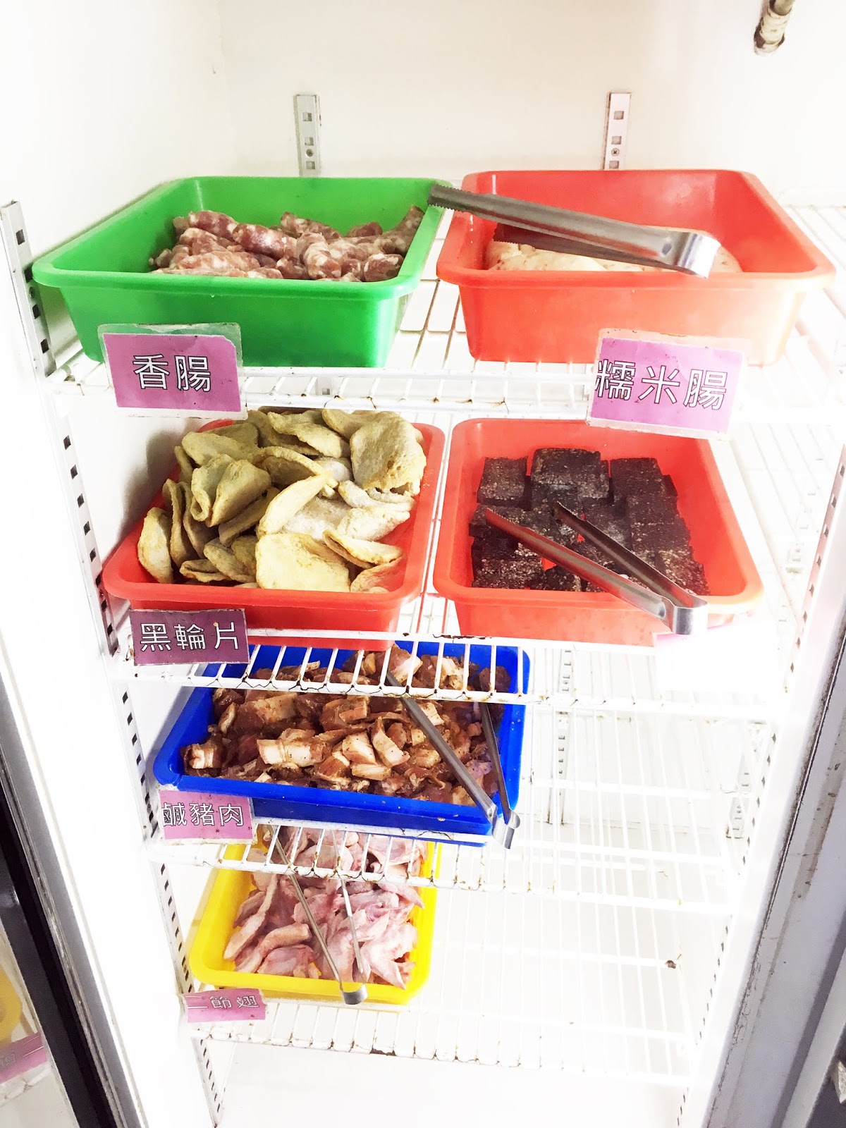 | 香腸、糯米腸、黑輪片、豬血糕、鹹豬肉、二節翅 |
