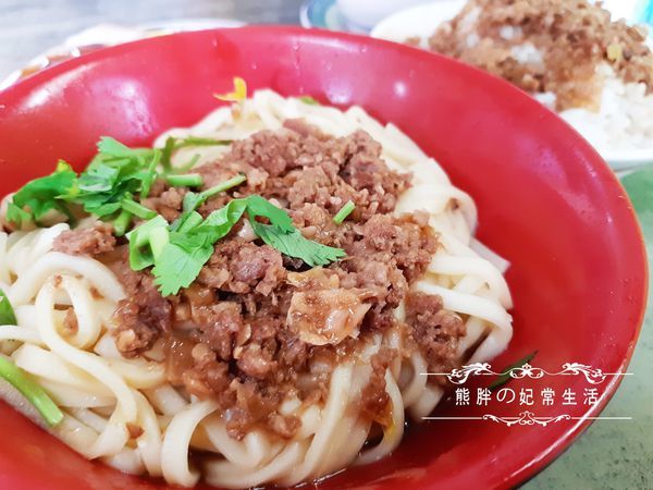 鹹香肉燥搭配Q彈麵條,並淋上店家特製的辣椒醬