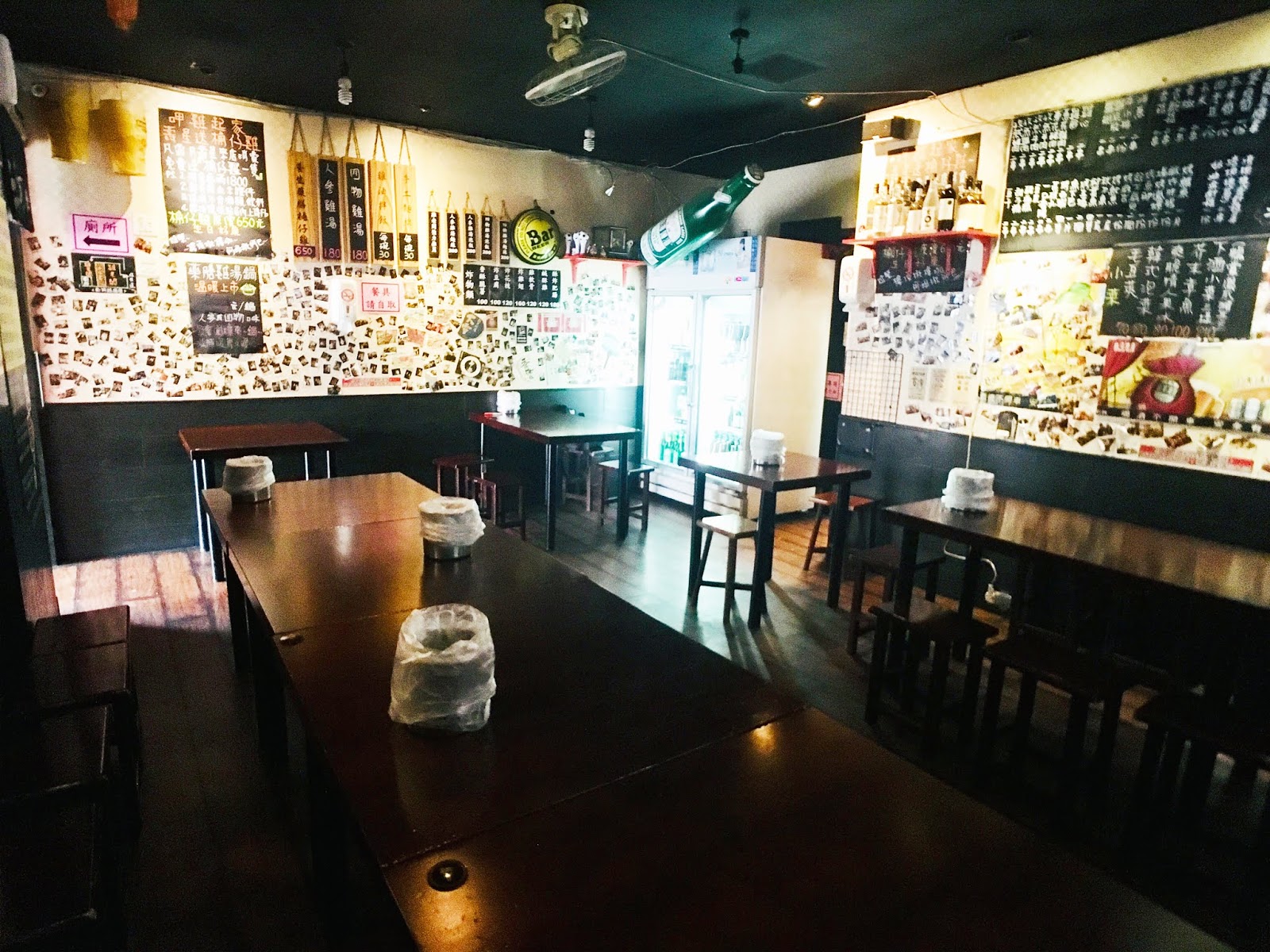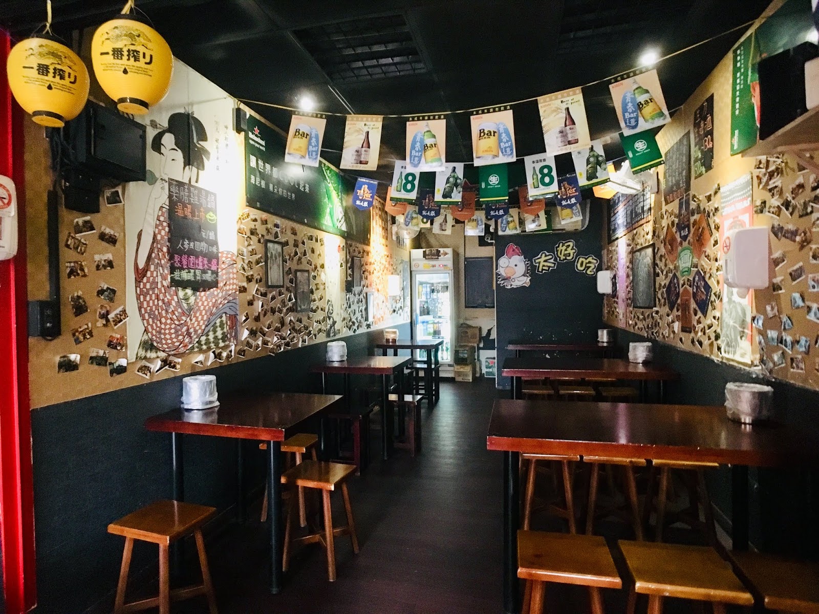 店內佈置採傳統居酒屋氛圍,微暗的燈光下,隱約可見諸多日式元素,像是松竹梅布簾、仕女圖、木牌菜單...給人悠閒放鬆的感覺,適合喝點酒與友人傾吐心事。