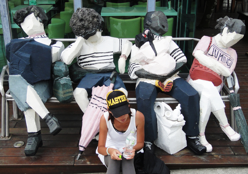 朱銘美術館很好玩的地方還有,許多作品都與人群有所互動,跳脫以往人觀看作品的模式。這個在咖啡館外頭休息的人像雕刻,更證明了到底是人觀看作品還是作品觀看人的有趣現象!